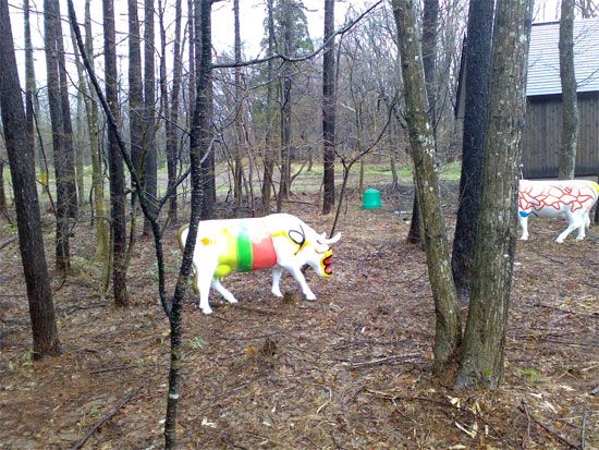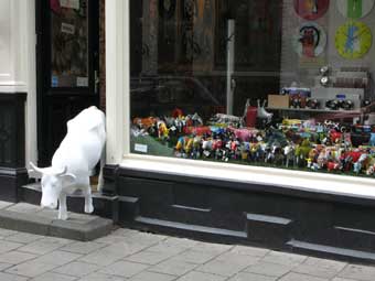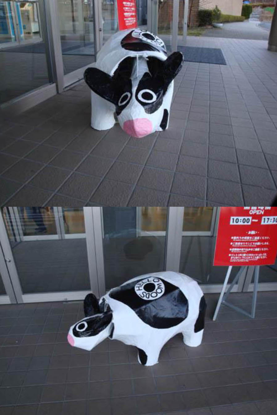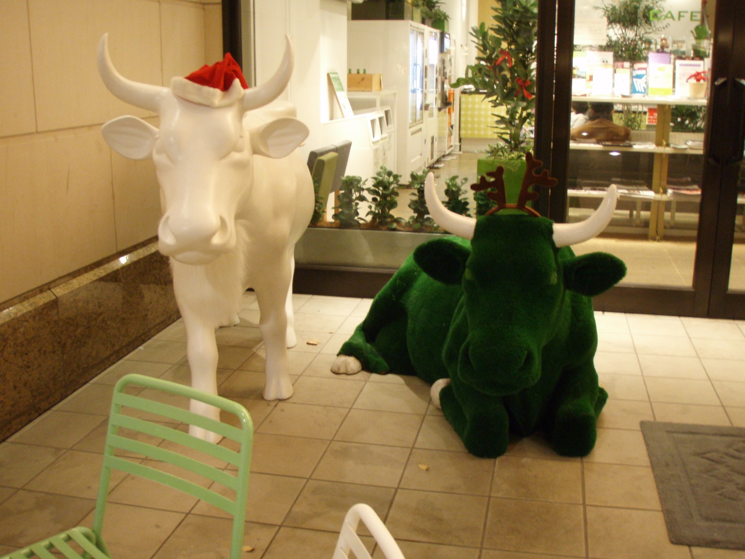 オブジェが邪魔でお店に入れません。 小さくて見えにくいですが、小さいフィギアも牛たちです。