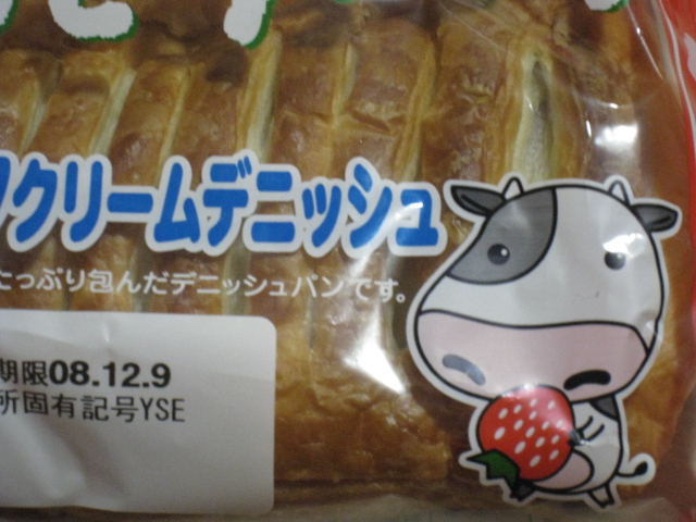 ドラッグストアで買った「いちごジャム&ミルククリームデニッシュ」に描いてあった牛が、あまりにもブサイクでした。パンは美味しかったです。