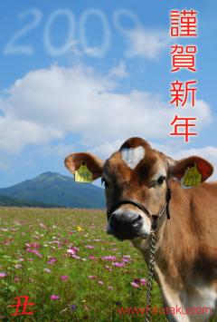 そろそろ年末となると、年賀状の作成ですね。 年賀状に使えそうな「牛」をお願いします。 牛の像、牛の絵、生きている牛、牛っぽい物、牛っぽい地名、とにかく牛ならなんでも構いません。お願いします。