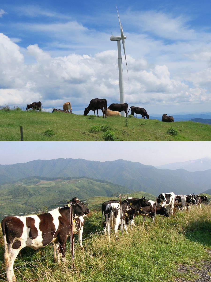 四国カルスト。標高1100〜1400mの台地でのんびり草を食んでいます。