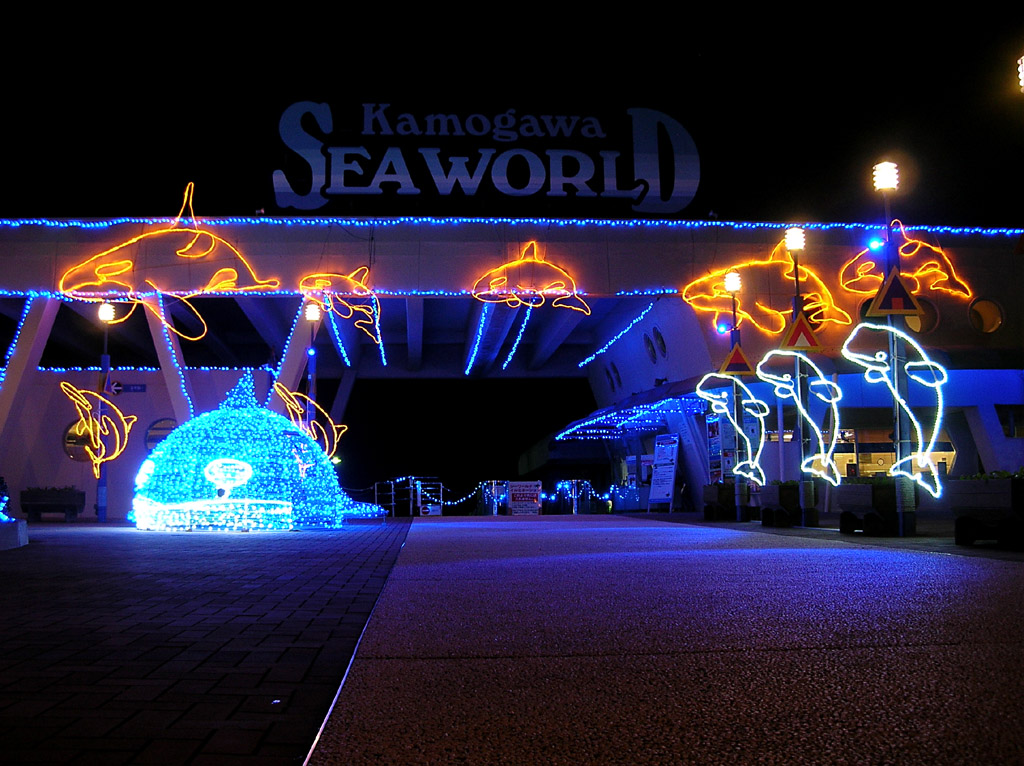 鴨川シーワールドの正面入口前イルミネーションです。 今現在開催中です。 規模はさほど大きくないですが、ちょっと変わったイルミなのでオススメですよ! 期間限定ですので、お住まいが近くの方、興味のある方は急いでね! 今回は、平成21年1月6日まで開催の様です。