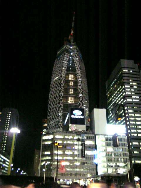 昨年の1月に撮影しました。 コクーンタワーがまだ建設中で、上部にクレーンが乗っています。 工事中なのに、照明を使って2008と新年をお祝いしているのが心憎いなと思い、撮影していました。