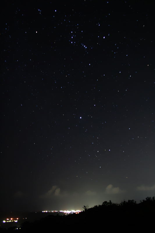 石垣島のバンナ森林公園にある南の島の展望台から眺めた夜景です。 冬に撮影した写真で、オリオン座が写っています。 街の上にも星は輝いていると改めて実感しました。