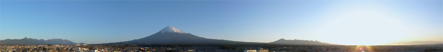 犬の散歩から帰ってきたら、ちょうど太陽が顔を出したところでした。ぐるっと数枚撮影して、パノラマ作成ソフトで繋げました。