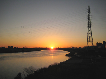 相模川河川敷からの初日の出 (2009.1.11)