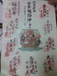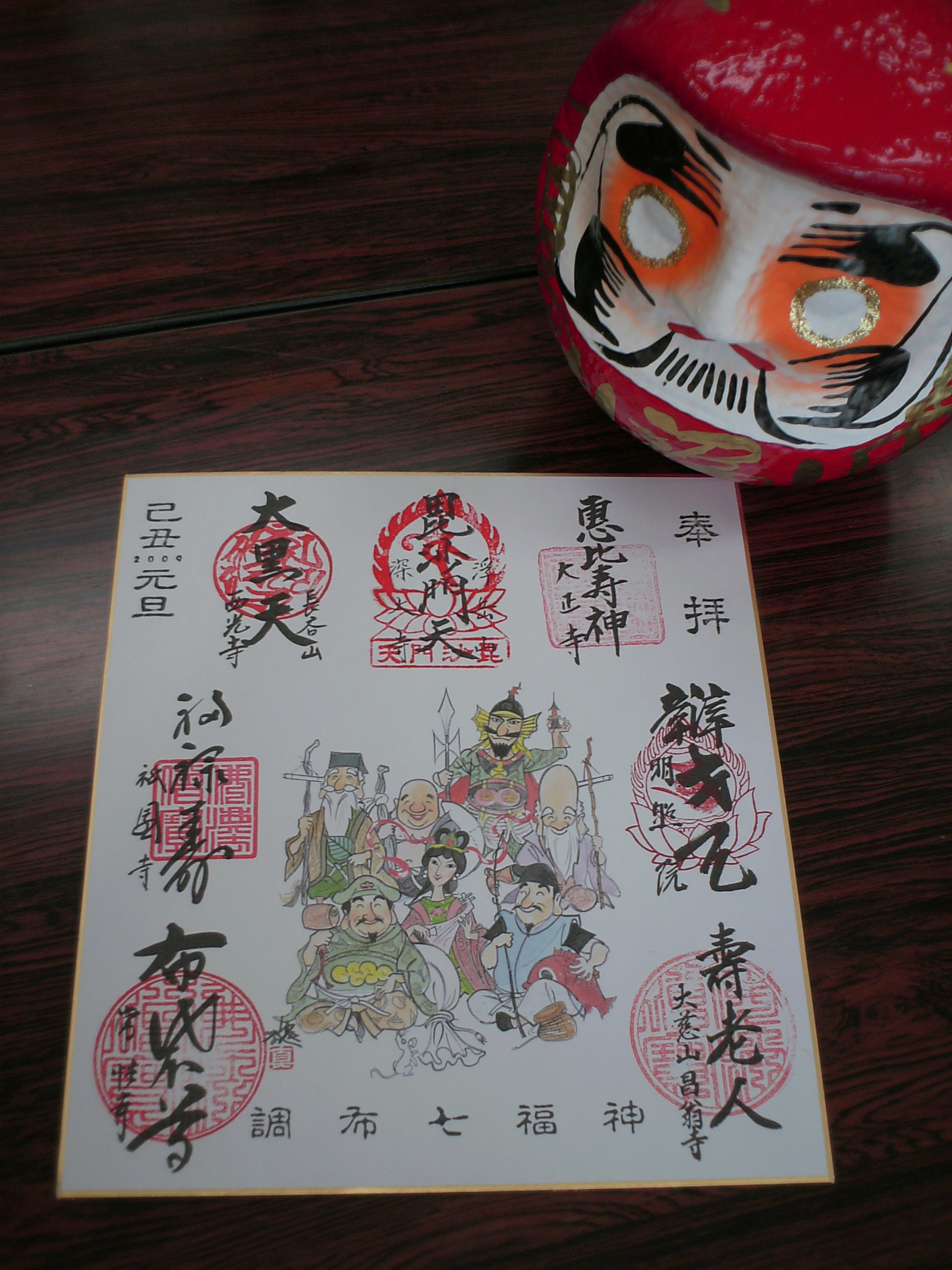 お正月といえば七福神巡り。七福神といえば色紙ですね。毘沙門天や布袋尊、大黒天など7箇所を巡ってスタンプやご朱印を集めた満願の色紙が見たいです。全国にはどんな色紙があるのかなぁ。