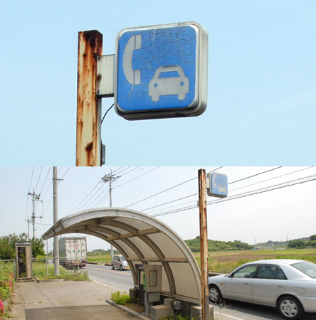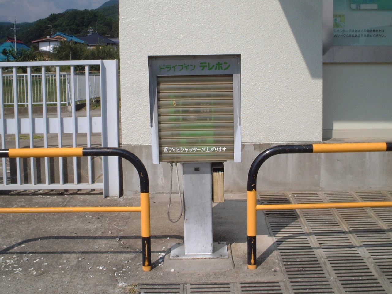 2006年10月に発見しました。今もあるかどうか分かりませんが、名称は「ドライブインテレホン」です。写真は電話本体ですが、イラスト付看板もあります(上記のページで取り上げています)。