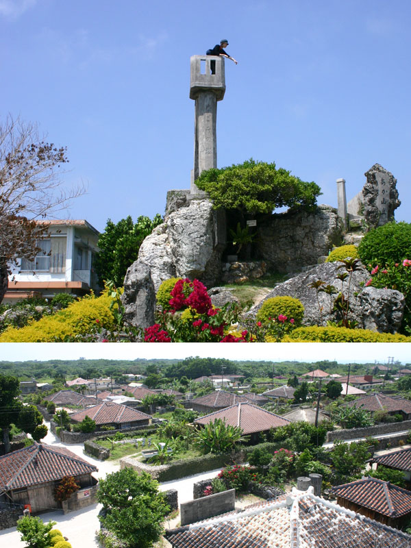 八重山列島の竹富島にある小さな塔です。赤瓦の集落を上から眺めることが出来るのですが、安藤さんの記事(2007/05/16/b)にもあるように、階段が狭くて急なので結構怖いです。