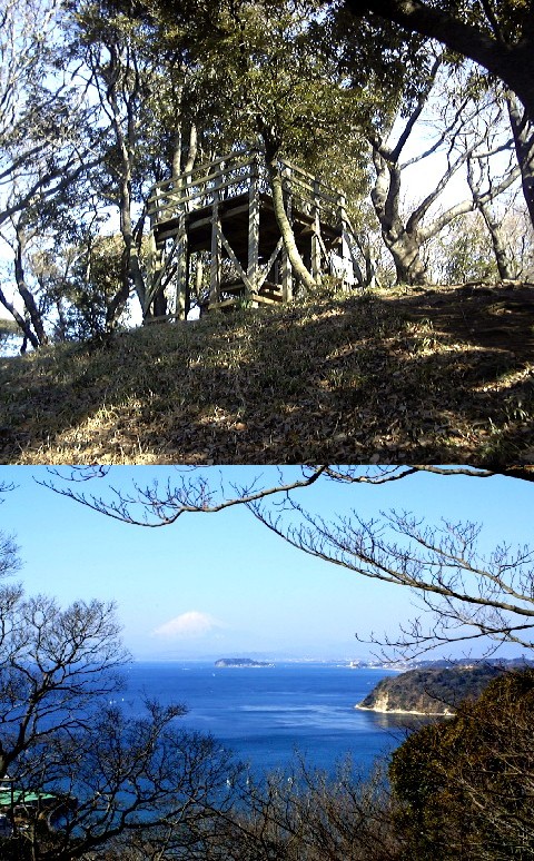 逗子と葉山にまたがる海の見える尾根上にある木製の小さな展望台です。 小さいですが眺めは最高。 台の上からは逗子湾、大崎岬、そして江の島越しに富士山が望めます。 因みにこの展望台は長柄・桜山古墳2号墳という4世紀後半に造られたと思われる古墳の上に建っています。