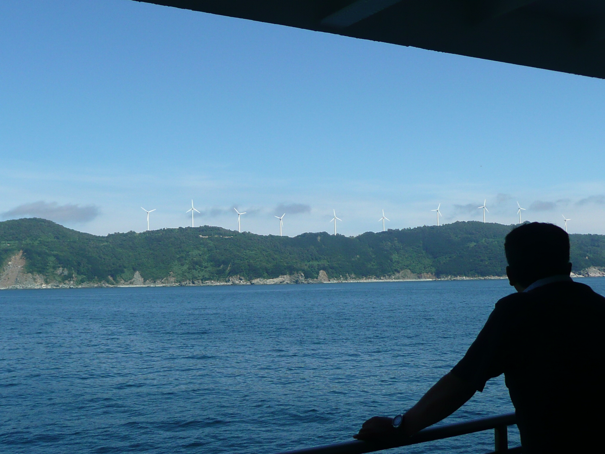 去年の夏に大分・佐賀関港から愛媛の佐田岬に向かうフェリーからとりました。 昔から風の強い地域として知られていた佐田岬に2007年の2月に出来たそうです。 この日はお盆で天気もよく、白い風車がとてもきれいに回っていたのが印象的でした。 海の青と空の青、みかん畑の緑色と風車の白色。 ぜひもう一度行きたい場所です!