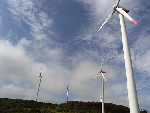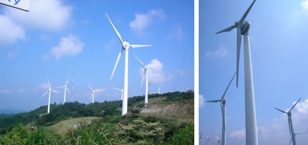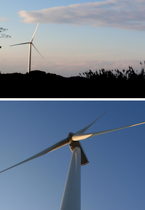 全長約50km・幅1〜3kmの細長い半島の稜線上に、20基以上が林立しています。 更に増設予定でしたが、地元集落にも近いために騒音問題が持ち上がっていたり、難しい点もあるようです。