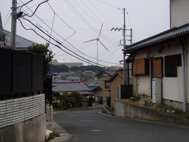住宅地にそびえる風車 (2009.4.12)
