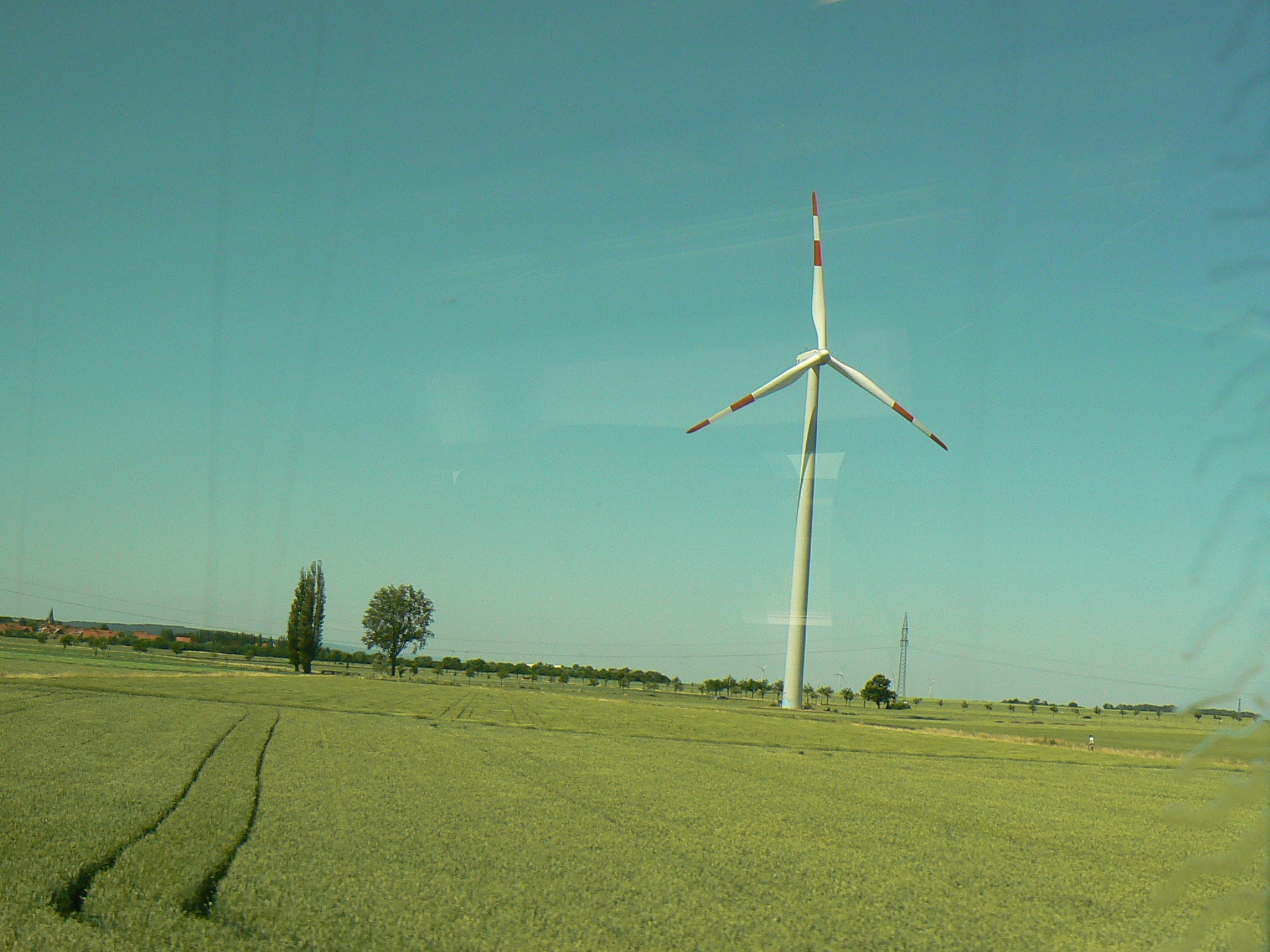 ドイツの風車です。 フランクフルトからベルリンへのICE車中から見かけた風車なので、場所ははっきりしませんからフランクフルトにしています。 他ドイツでは、ミュンヘンなどでも風車を見かけました。