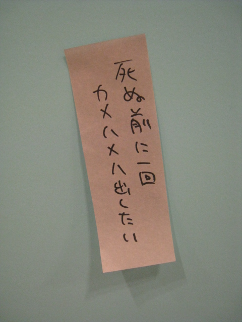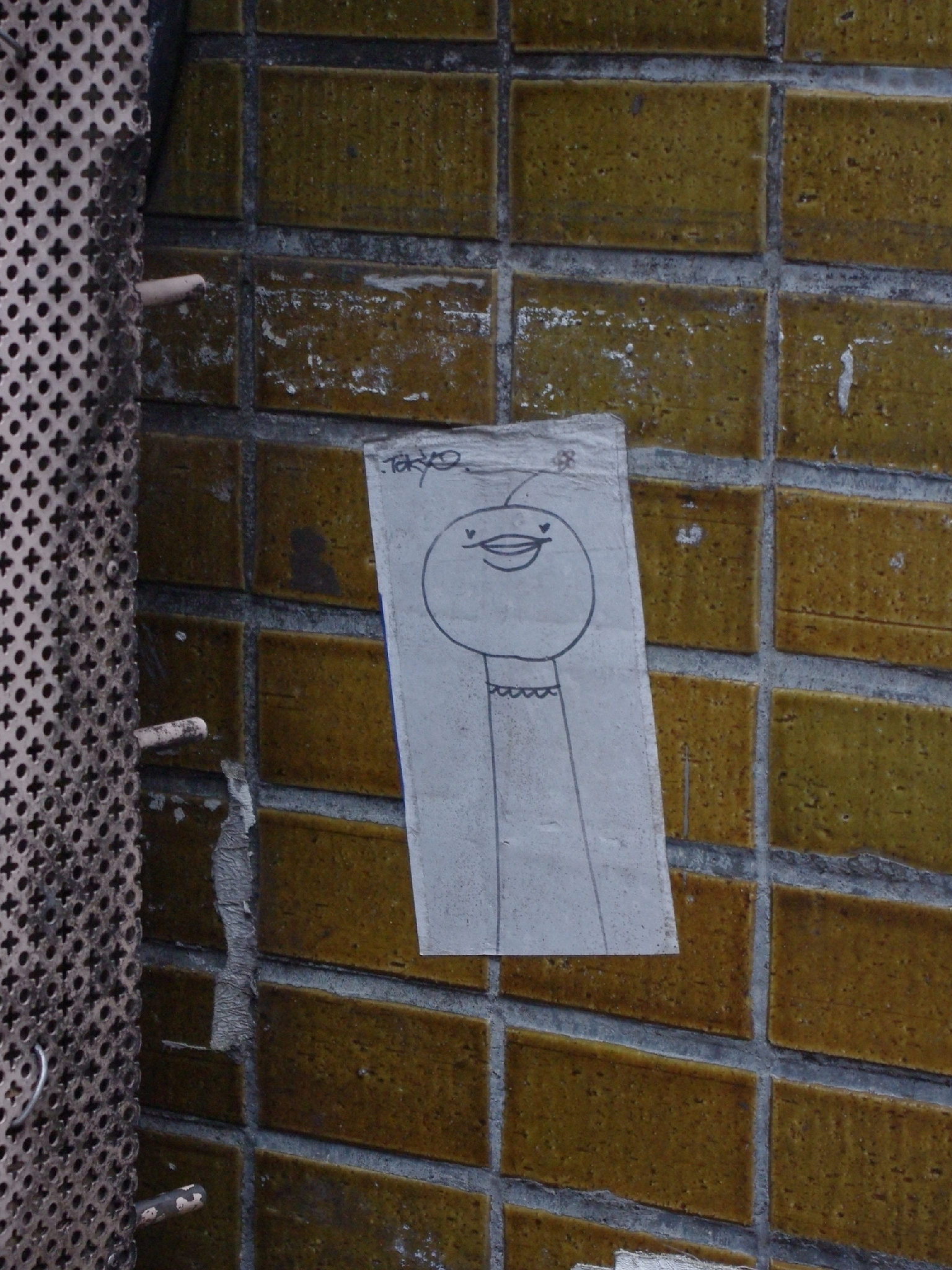 そんなところに、なんかかわいらしい張り紙があったのです。ビルの外壁に、ぺったりと糊付けしたような感じで、いかにも「貼り紙」という感じです。