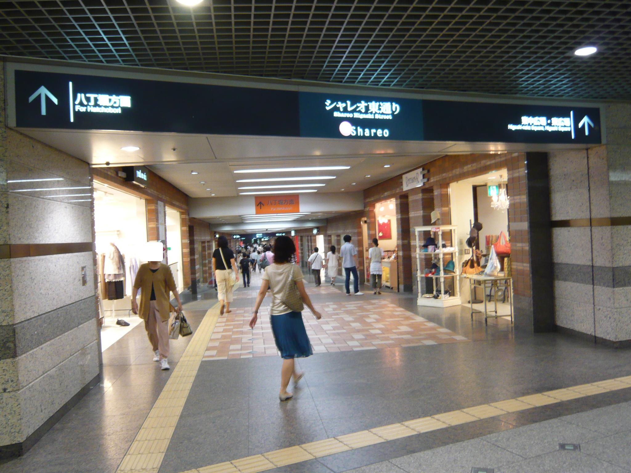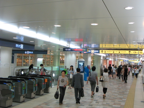 地下街の中心には「出逢いの広場」があり、待ち合わせによく使われます。(写真:中)
