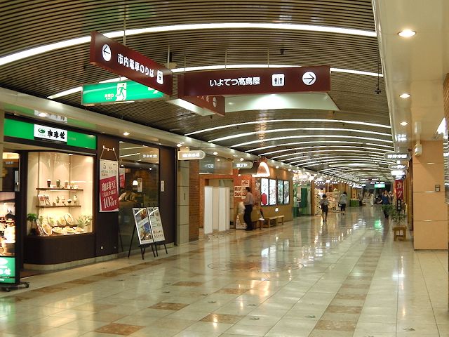新潟市の繁華街である「古町」の地下にあるこの地下街は、約330mあり、様々なショップが並びます。(写真:上)