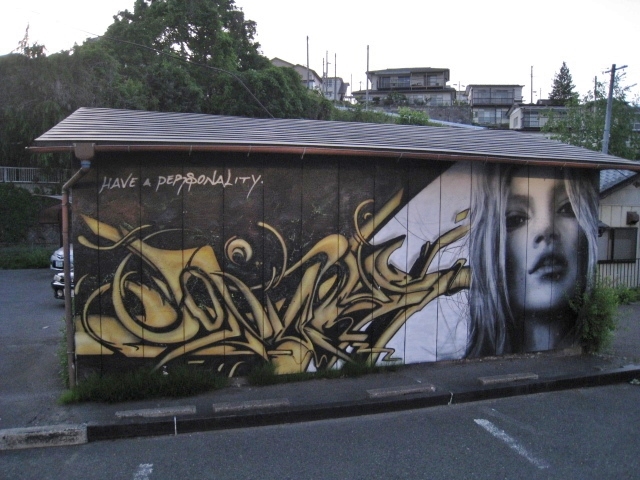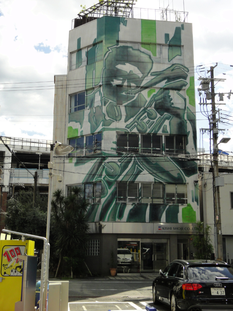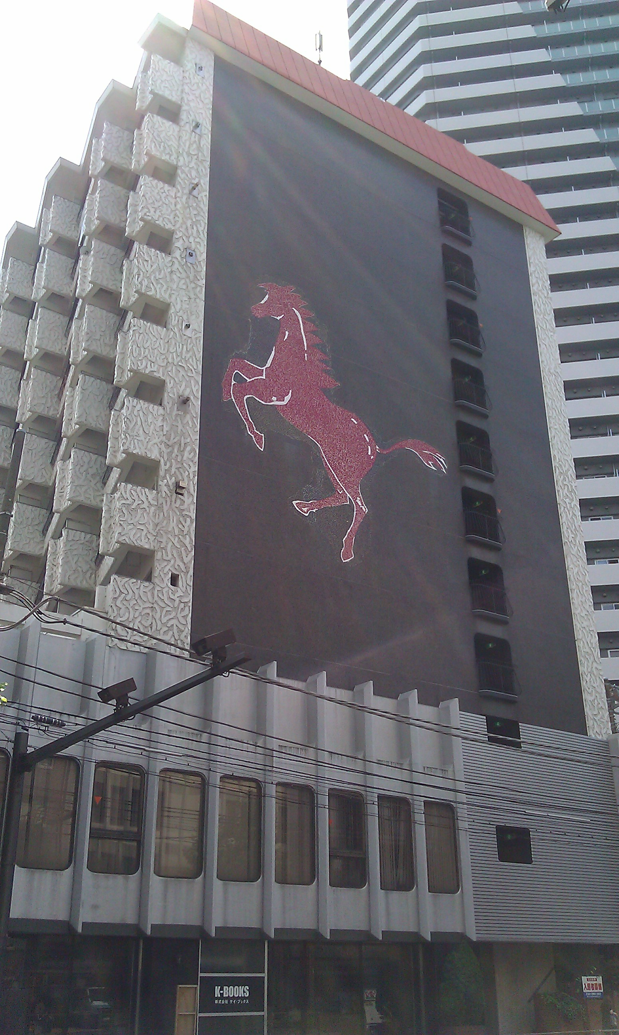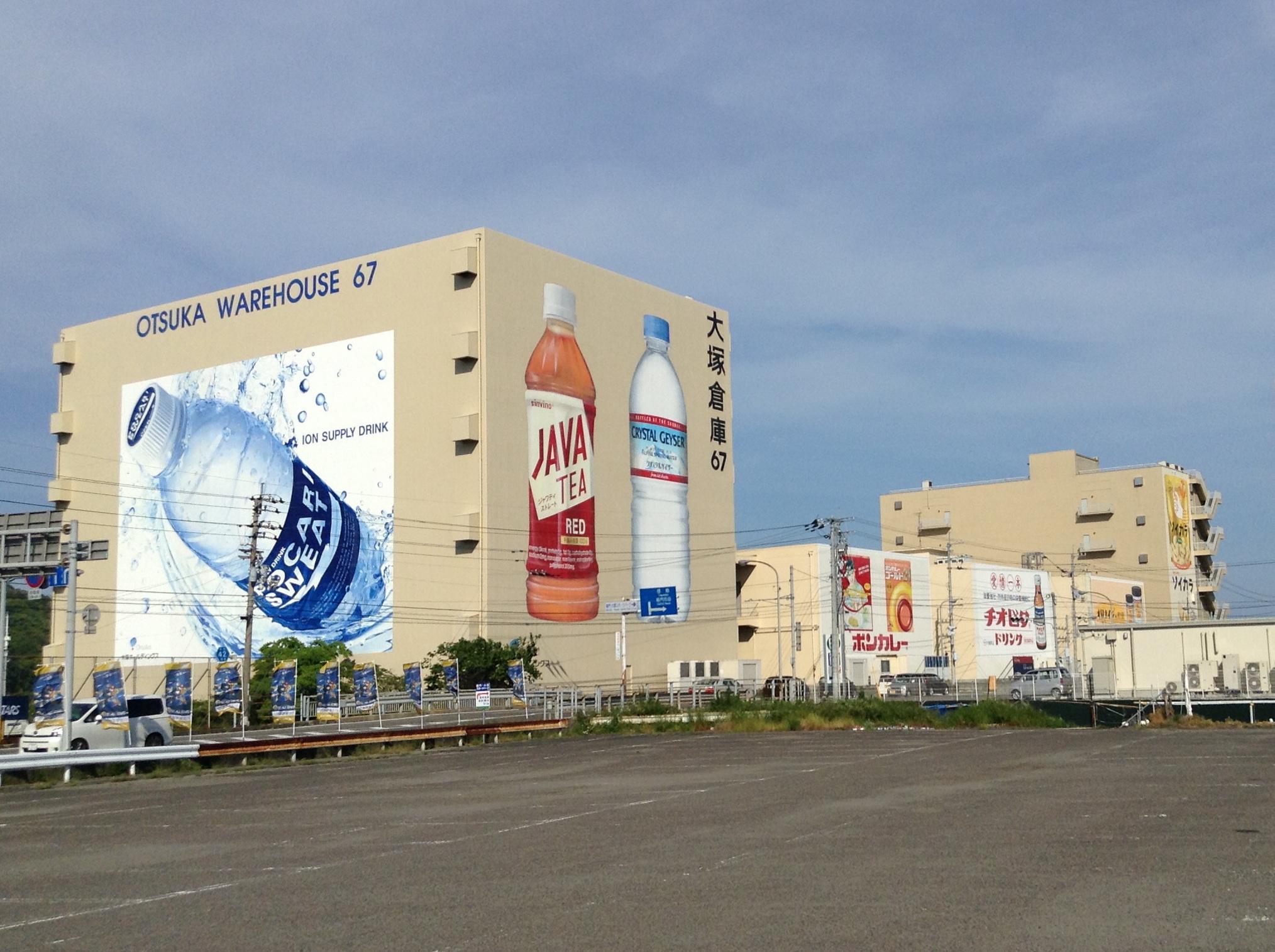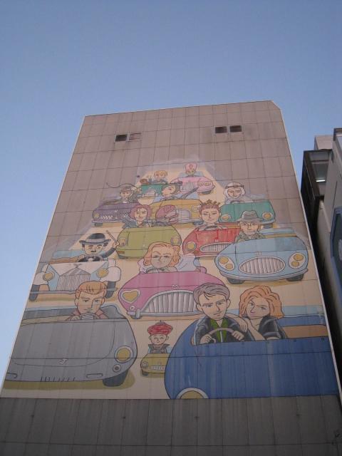 ・いやもしかしたら裏面にも絵があるかもしれません。窓の無い建物は絵を描きたくなるのでしょうが、スポーツ施設らしくは無い絵ですよね・・・周囲は広い平面駐車場で撮影しやすかったです。