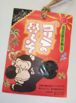 千葉市動物公園のお土産「ゴリラの鼻くそ」。 黒豆薄甘納豆のようです。 見た目通りの直球勝負なネーミングだと思いました。