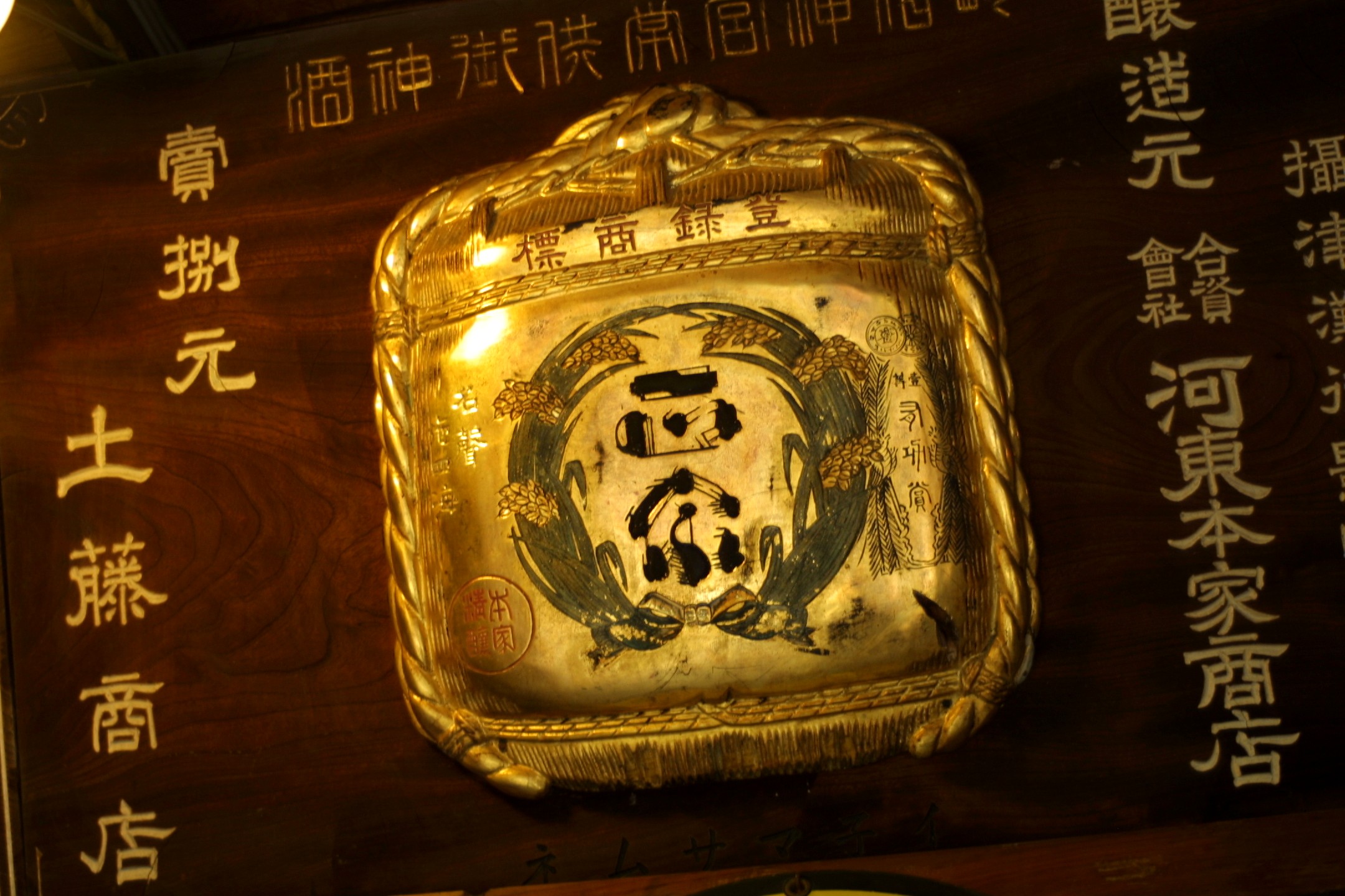 伊豆・下田の旧市街地にある創業明治20年の老舗酒店「土藤商店」の倉庫に保存されている木製看板です。 この倉庫は一般に公開されていて、訪れると古い看板や道具などを見せていただけます。