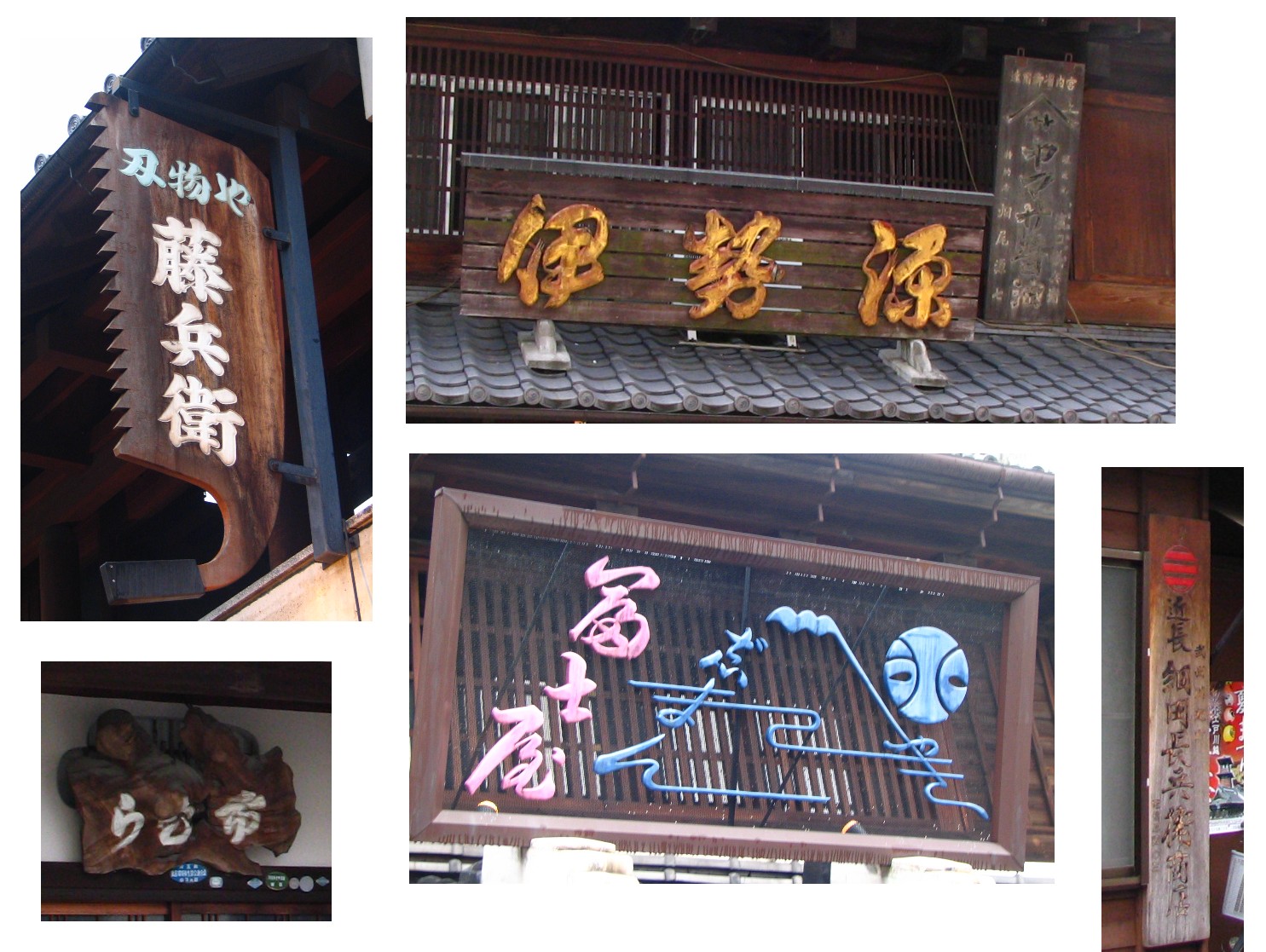残念ながら現在は営業されていませんが、古い町並みとして保存されています。 ユニークな書体が目を引きます。昭和21年作、宇和檜の一枚板だそうです。