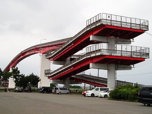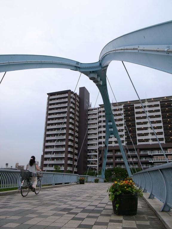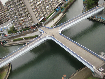 北部イングランド、Newcastle-upon-TyneのMillennium Bridgeです。歩行者、自転車専用。何か難しい力学計算でバランスを取っている現代建築の傑作らしいです(適当ですみません)。