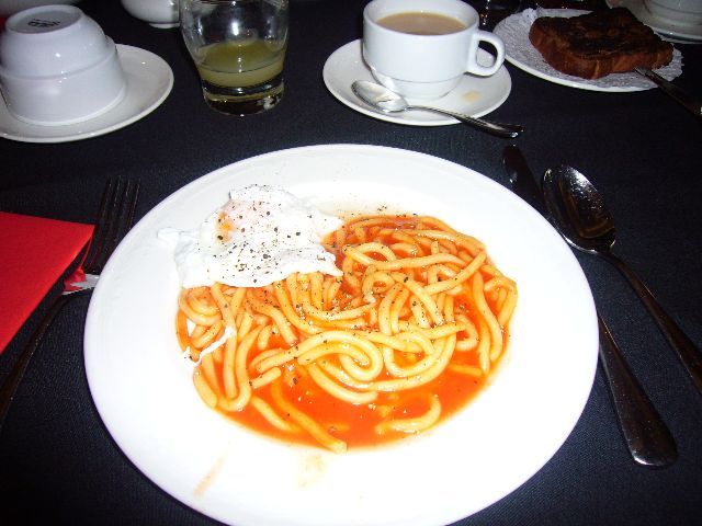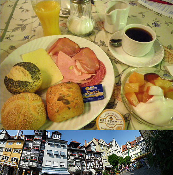 市街中心部の観光案内所の人から「徒歩なら20分程度」と紹介され、重い荷物を引きずって歩いて行ったら何と55分も掛かり(後に地図の縮尺を確認して計ったら3kmありました...)へとへとになりましたが、ドイツの朝食には珍しく野菜や果物も多少あり、朝食に関しては満足でした。