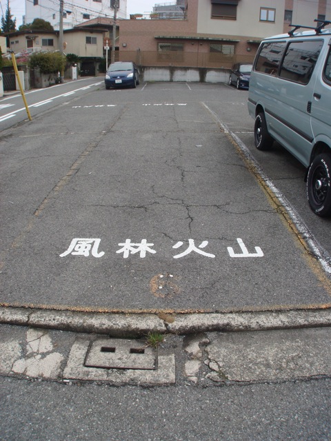 近所の駐車場に「風林火山」って書いてありました 初めて見たときはすごい不思議でした 武士がでてきそうです 毘沙門天とかいろいろ増えていったらいいのになぁと、 最近は思います 何かというと 「風林火山」っていう焼き肉屋さんが近くにありました