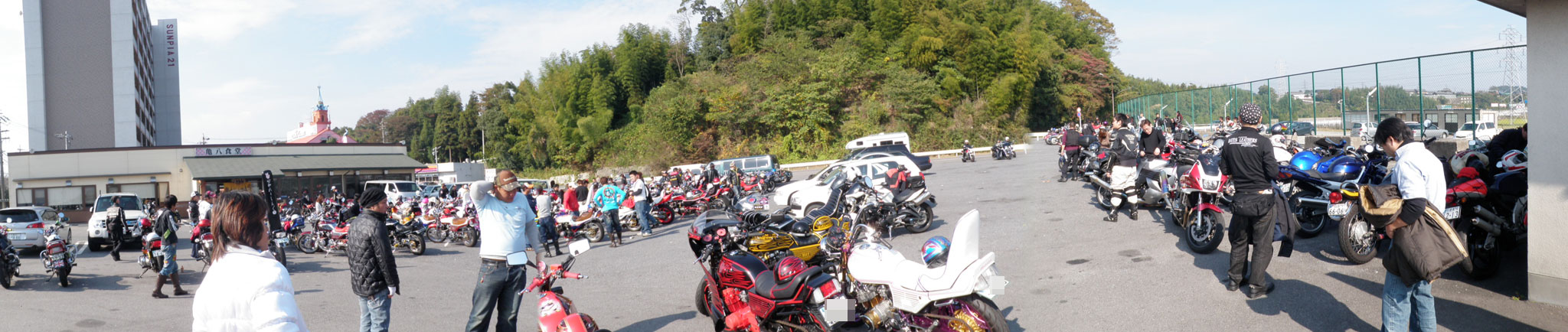 三重県亀山市にある「亀八食堂」です。 元はトラック運転者向けの「ホルモン・焼肉鉄板焼き」のお店だったのですが(現在でもそうだと思います) ・駐車場が広い ・ワイワイ食べることができる ・美味しい など、バイク乗りで評判が評判を呼び、休日ともなると「バイクだらけ」になります ↓この日は、特にすごかった(ヤンチャなバイクも・・・)