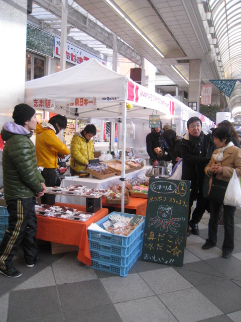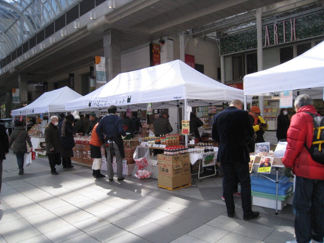 去年、前出のマルシェジャポンが期間満了で終わってしまい、この辺がまた寂しくなったのですが、同じサンモール商店街のアーケードでこの春から「伊達美味マーケット」というのが始まりました。今日はプレオープンで4月から隔週末の定期的に出店するそうで、楽しみです。 仙台の街中でもちょっと人通りが少ない区画なので、これで活気が戻ってくれれば良いなあ。