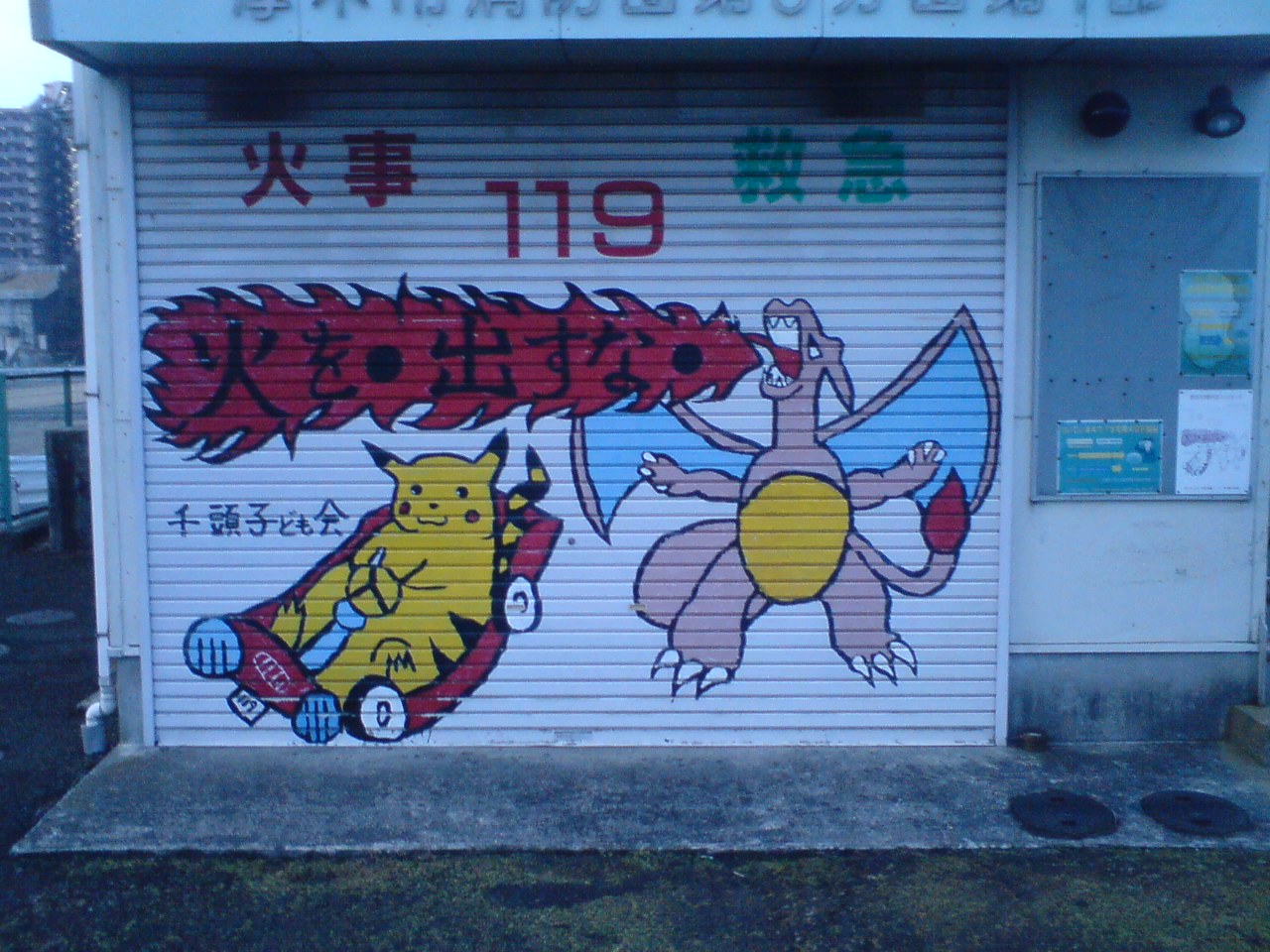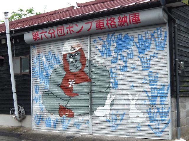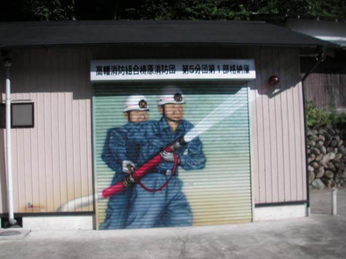 消防団小屋のシャッターには「火の用心」を連想させる絵が描いてある事が多いですよね。 素人っぽくて結構楽しい絵があります。 ご近所の消防小屋の絵を見せてくれたら皆さんが「火の用心」 してくれるかも!?