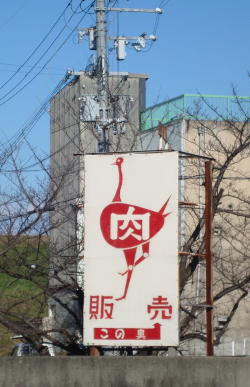 大阪府寝屋川市のバイパス沿いの看板です。恐らく肉屋のものでしょう。バイパスは比較的新参者ですが、肉屋は昔からあったような気がします。そんな看板です。