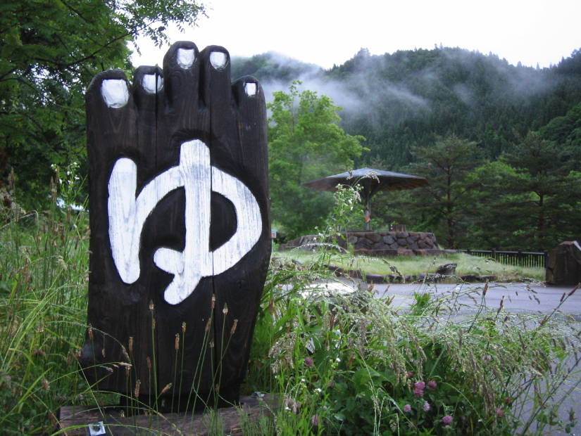 栃尾温泉・蛍の湯足湯の足のカタチの看板です。 気持ちよかった〜♪