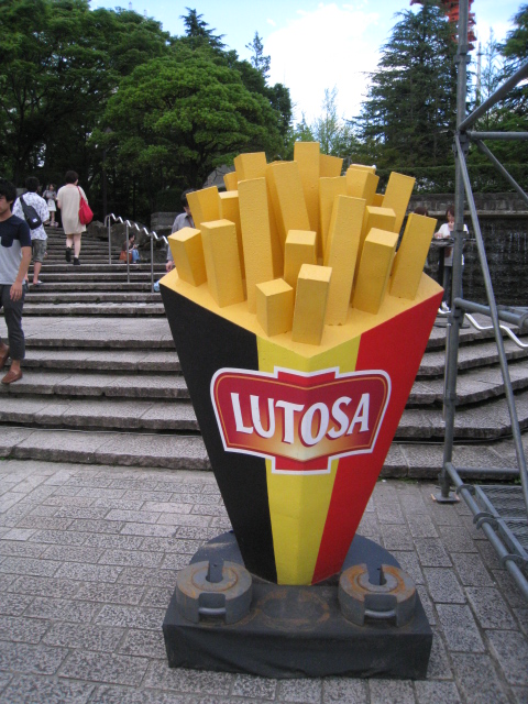 勾当台公園で行われたベルギービールウィークエンドというイベントの時に、ベルギーのポテト屋さんの立体看板が出ていました。ベルギーの同業他社のあいつみたいにおっさん顔がついていないので安心しました(笑)。 https://backnumber.dailyportalz.jp/cs/mitaiwa/detail/100920134930/1.htm こちらは、シャキーンとしています。ポテトがビル群みたい。