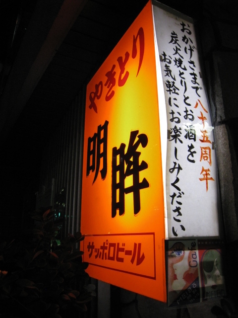 連投失礼いたします。 毎年「○○周年」の紙が書き換わるのですが、今年は85周年の節目だからか、下におしゃれな昭和のモガっぽいイラストが貼られていました。 Cafeとあるので、焼き鳥屋の前身はカフェだったのでしょうね。