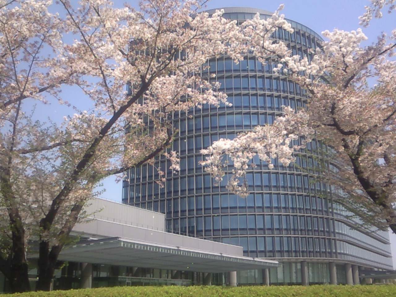 かつてこの地は養蚕が盛んで地名は挙母(ころも)でした。 70年ほど前、桑畑の中に自動車工場が建ちました。 のちのトヨタ自動車本社工場です。 今ではこの一帯はトヨタ町と言う地名です。 挙母市から豊田市になったのは1959年のことだそうです。 写真は去年の4月に撮った桜の写真の中の一枚、 地図の中心よりちょっと南の本社ビルです。