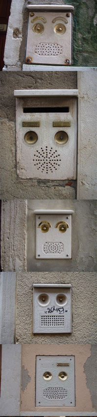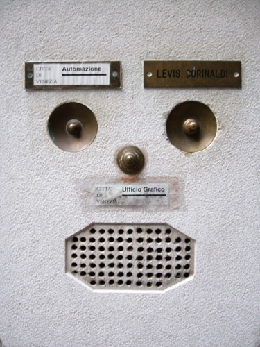 すでに投稿されていますが、、、 ヴェネツィアのインターフォンは、イタリアのほかの街では見られない独特の形をしています。 「顔」に見えるように撮影してみました。