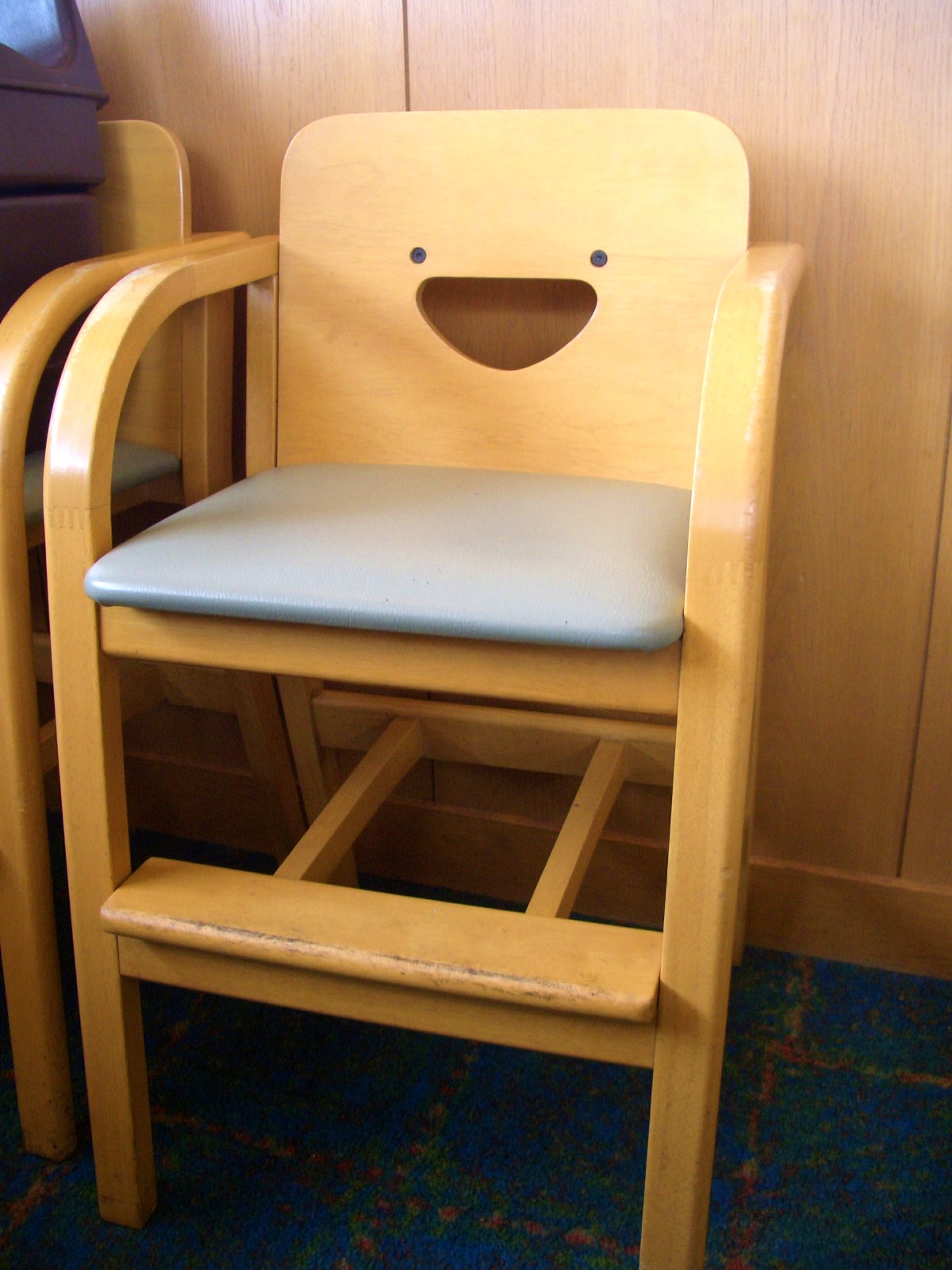 ファミレスの幼児用椅子の背板が 朗らかに笑っていました。