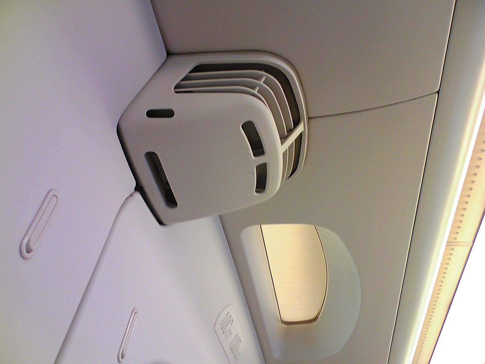 新幹線の窓際にある空調 (2010.4.20)