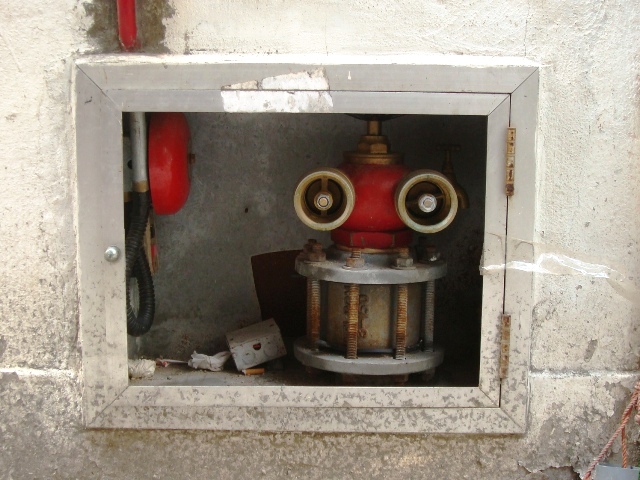 雑居ビルの裏側の壁に埋め込まれていました。たぶん消火栓だと思うのですが。ぎー、って言ってるような気がします。ぎー、って。
