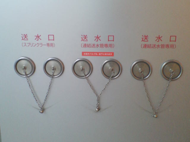ビル壁面の送水口が ネコっぽい顔になっていて 思わずヒゲを描きたくなりました。