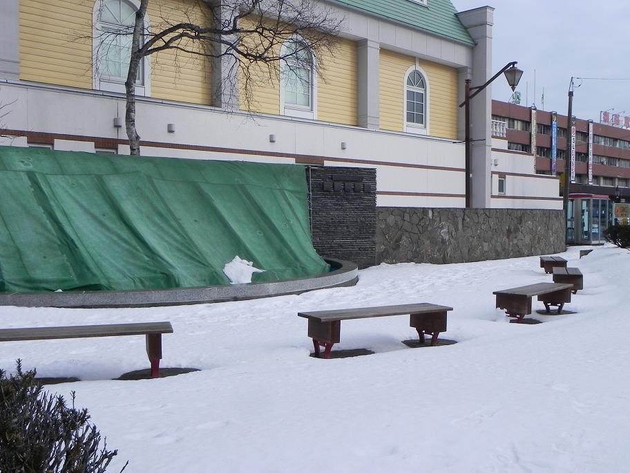 繭玉かと思ってましたが、音楽のヘ音記号をモチーフにしたオブジェだそうで、左右の大きな柱から宙吊りにしているワイヤーも五線譜を表しているそうです。