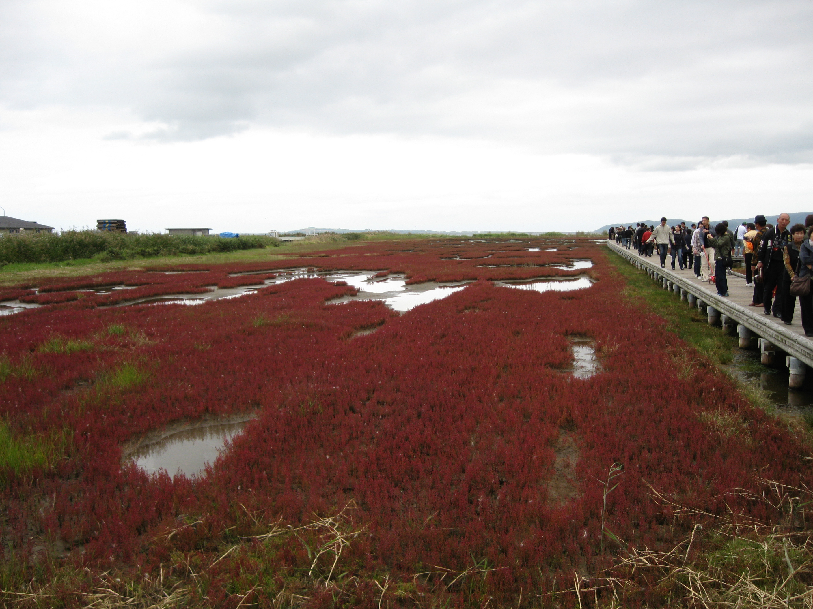 網走にある能取湖のサンゴ草群生地です。 秋の紅葉ごろが見ごろです。 でも花なので、紅葉とは別のものです。 記念撮影屋さんの掛け声が変です。 「たら〜ばが〜に〜!!」「ずわ〜いが〜に〜!!」 自然とみんな笑ってしまうのが巧いと思いました。 言わずもがな、網走の特産品です。