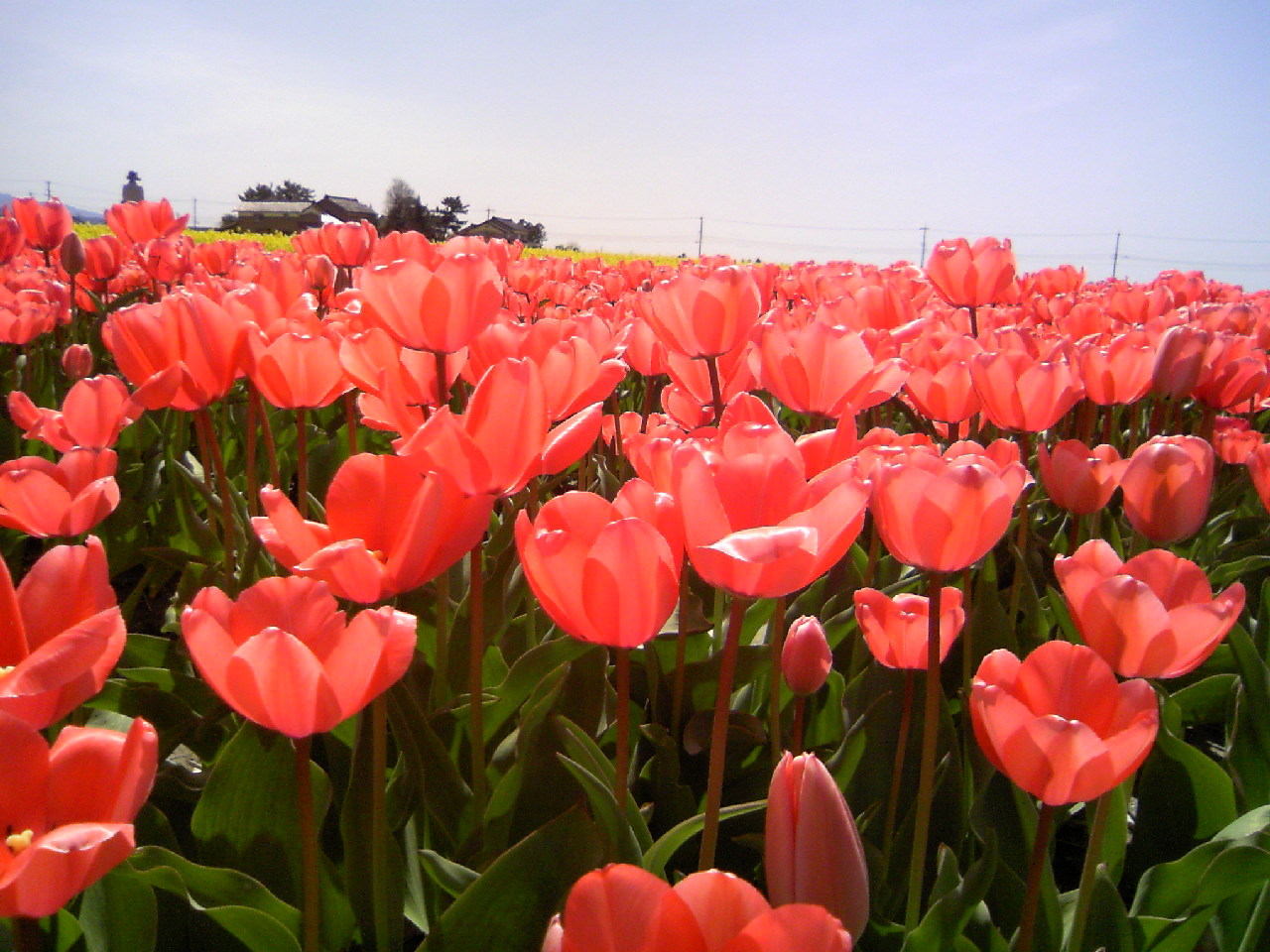 去年撮ったチューリップ畑です。毎年4月に一般公開され、各地からおおぜい見物にやってきます。光をいっぱい受けて花びらが透けてます。