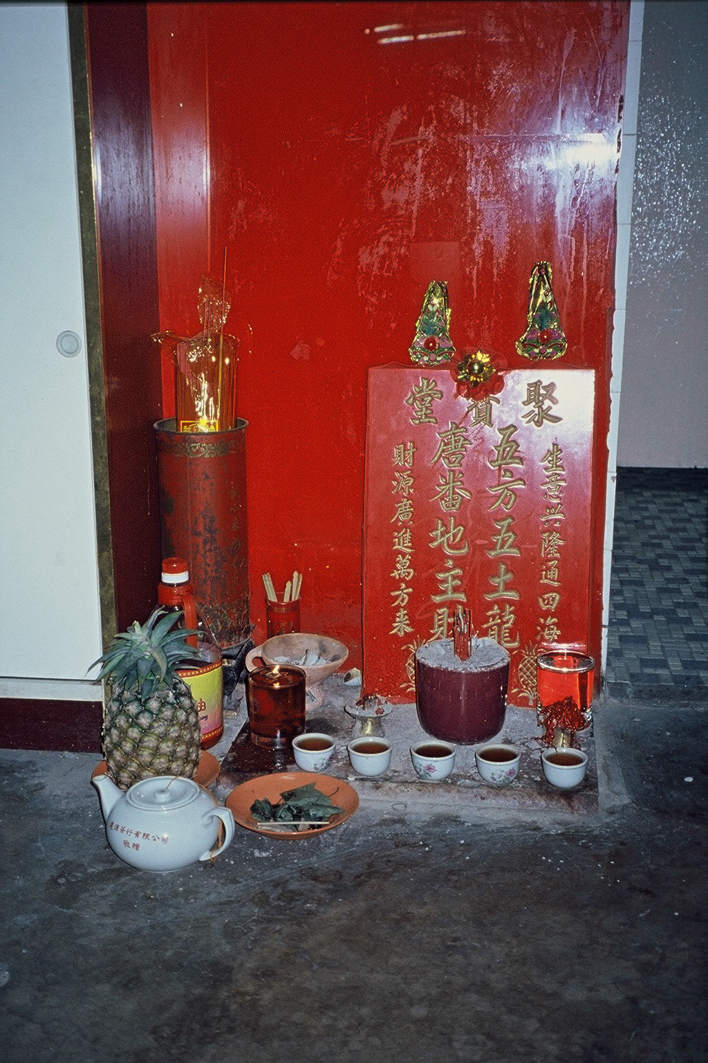 マレーシア、コタ・バルの街の中華料理店の片隅にあった祭壇。日本の神棚のようなものです。このお店のご主人は華人系で、家では中国語を話すということだったので、漢字で筆談しようとしたら「言葉は話せても、漢字の読み書きはできないんだ」と淋しそうに笑いました。生まれはタイで、6歳の時に母に連れられてマレーシアに来た、中国へは一度も行ったことがないと、ぽつぽつと話してくれました。