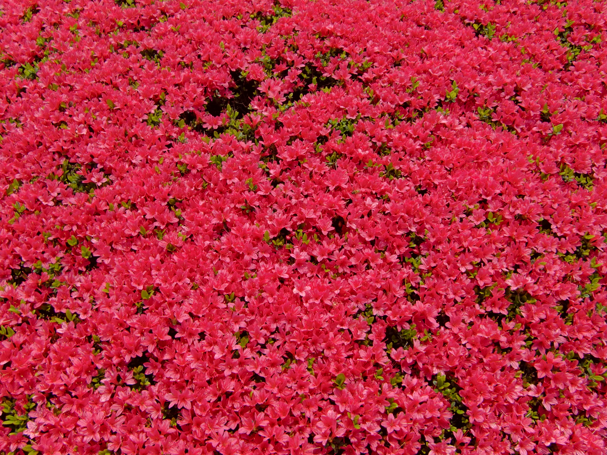 壬生総合公園につながる道路の植え込みのツツジです。 赤・・・というより濃いピンク、と言ったほうが正しいような・・・(^^;。 道の両脇には八重桜の並木があって、 満開は過ぎていましたが、こちらもキレイでした。