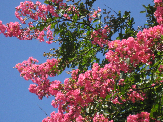 連投失礼いたします。赤というよりピンクですが、百日紅(百日紅)の花がきれいでした。
