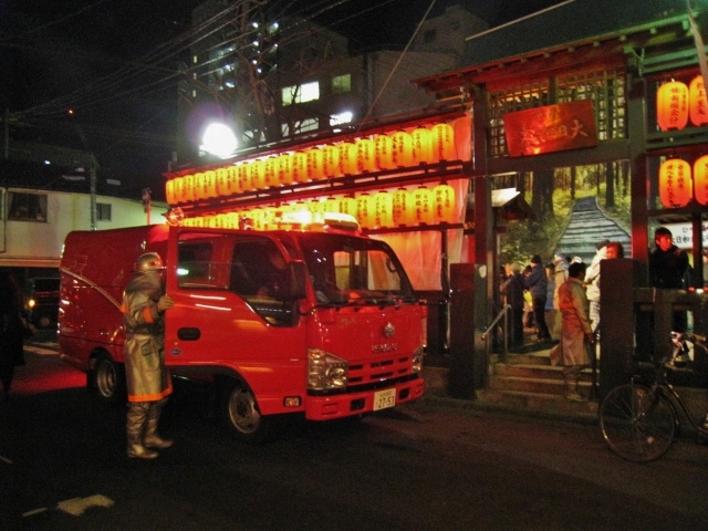 消防車が横付けしてあって、なんだなんだ?と思ったら、どんと祭(松焚祭などとも呼ばれる、神社で正月飾りを焼く祭り)を街中の狭い神社で行うために、町内の消防団が消防車をスタンバイしていたようでした。 ここのどんと祭は初めてだったのですが、焚火の周りを防火シートで覆ったりして、神社の規模や立地によって様子がいろいろだなあと思いました。今年も1月14日にやります。今年も火の用心で。