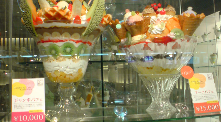 大人数(4人以上?)でわいわい言いながら食べることを前提に作られたジャンボパフェとかジャンボフラッペ(かき氷)とかありますよね。 一人では絶対に注文しない(できない)ジャンボなスィーツを見てみたいです。(ケータイとか大きさが比較できるものを一緒に写していただくとうれしいです)