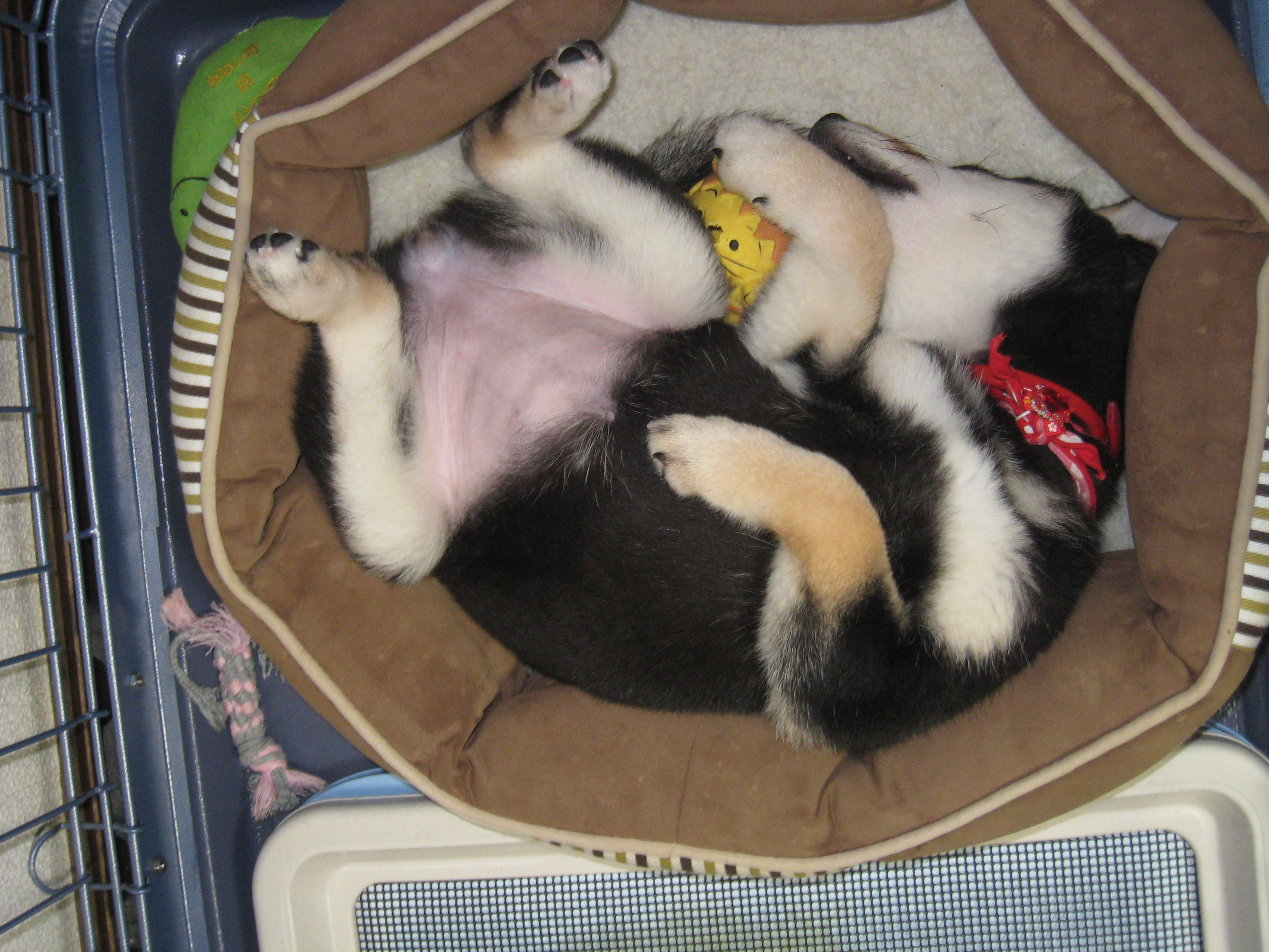 我が家に来たころのうちのワンコの寝姿です。 こんな無防備な姿は子犬のうちだけなんですよね…。 とか思ってたら今でも時々こんな姿で寝てやがります。