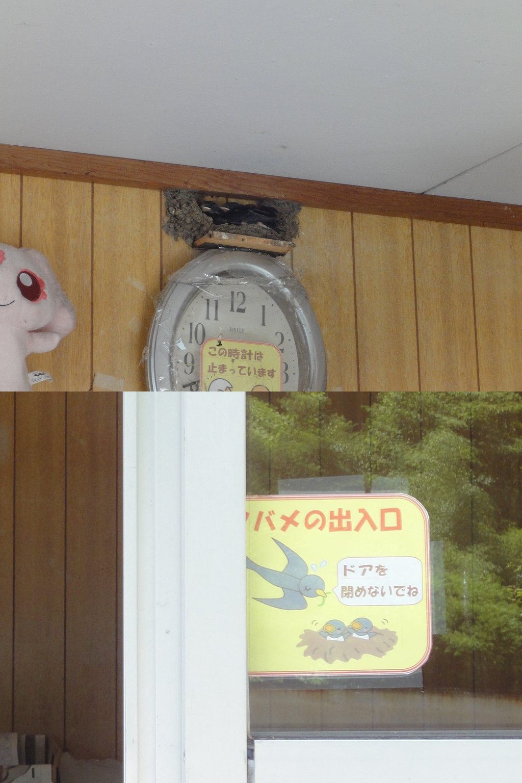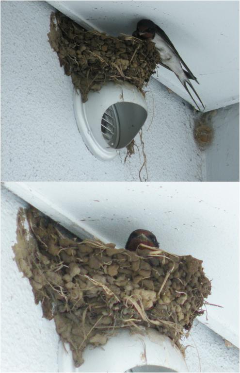 道の駅の建物に、二つ作られていた巣です。左は一階の軒先辺り、右は二階の庇(ひさし:と云っても8mは優に在る高さ)に作られておりました。